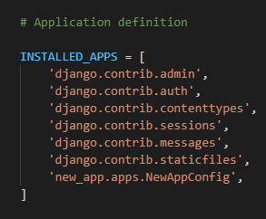 settings.py의 INSTALLED_APPS 리스트에 앱이름.apps.클래스명 추가