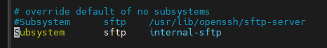 Subsystem 항목의 sftp를 internal-sftp로 수정한다.
