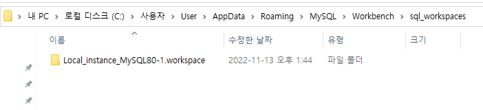 C:\Users\사용자계정이름\AppData\Roaming\MySQL\Workbench\sql_workspaces