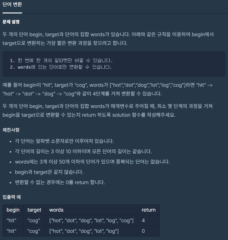 프로그래머스 - 단어 변환 문제입니다.