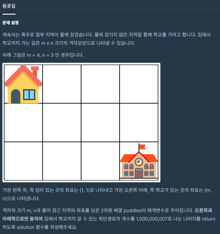 프로그래머스 - 등굣길 문제 입니다.