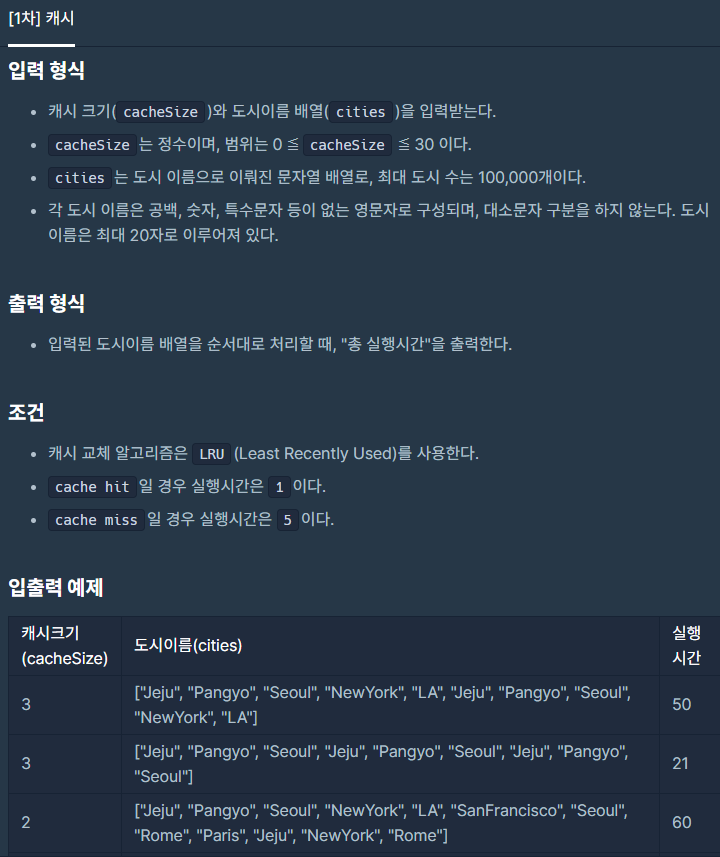 if(cache.size() == cacheSize) cache.pop_back(); // 캐시가 가득 찼을 경우, 가장 오래된 데이터 삭제