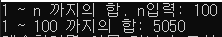 print('1 ~ {} 까지의 합: {}'.format(n, sum))