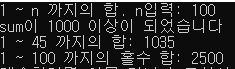 print('sum이 1000 이상이 되었습니다')