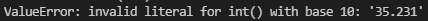 ValueError: invalid literal for int() with base 10