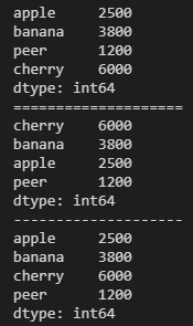 fruit = pd.Series([2500, 3800, 1200, 6000], index=['apple', 'banana', 'peer', 'cherry'])