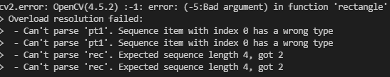 OpenCV(4.5.2) :-1: error: (-5:Bad argument) in function 'rectangle'