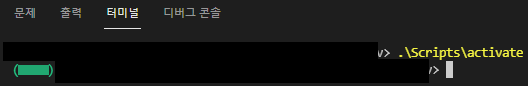 Scripts 디렉터리 내부의 activate를 실행하면 가상환경 활성화가 되고