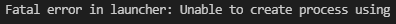 Fatal error in launcher: Unable to create process using "경로"