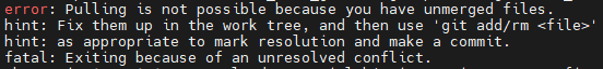 KillinTime 2023. 1. 13. 22:50error: Pulling is not possible because you have unmerged files.
